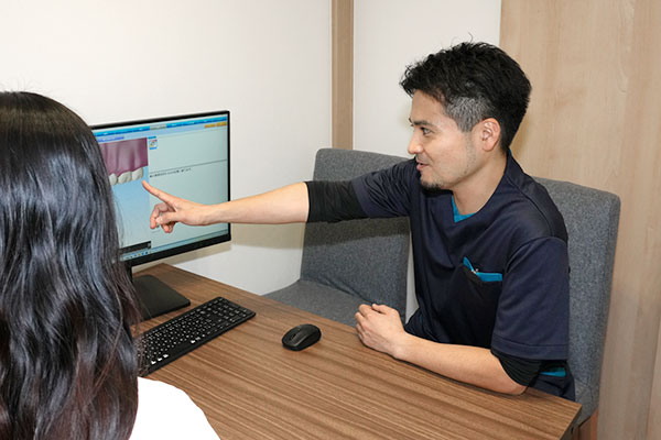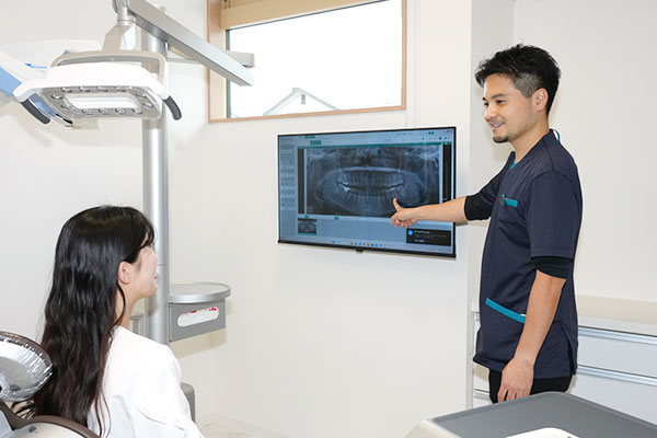 初めての方でも安心して通っていただけるよう、治療前の説明には特に力を入れています。レントゲンや口腔内カメラの画像を使って、見えにくい部分も「目で見てわかる」形でお伝えします。治療内容や選択肢をきちんとご説明し、患者さまの同意を得てから進めることを徹底しています。さらに、麻酔や処置時の痛みにも最大限配慮し、不安を和らげる優しい治療を心がけています。納得できるからこそ安心して通える、そんな歯科医院を目指しています。