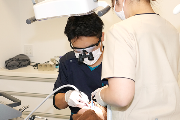 むし歯や歯周病の治療は、歯をできるだけ削らず、抜かないことを基本としています。将来の再治療を防ぐため、状況によってはマイクロスコープや精密機器を活用した丁寧な治療を行います。