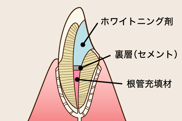 ウォーキングブリーチは、過去の治療で神経を抜いた歯や、神経が失活してしまって歯が黒ずんでしまった場合に行うホワイトニングです。歯の内部にホワイトニング剤を注入し、そのまま数日間経過を待ち、これを数回繰り返すことで、歯の内側から白くしていきます。歯を削ることなく、単独で黒ずんでしまった歯を周囲の歯の色に合わせることが可能です。