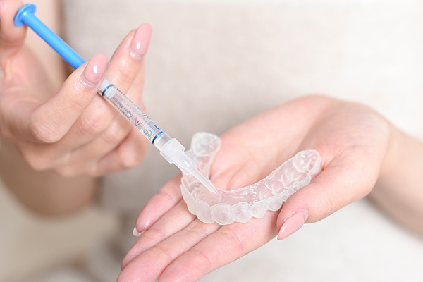 ホームホワイトニングは、ご自宅でご自身のペースで歯を白くしていく方法です。患者さまの歯型に合わせた専用のマウスピースを作製し、そのマウスピースに過酸化尿素を主成分とするジェルを入れ、毎日数時間装着していただきます。過酸化尿素は時間をかけてゆっくりと過酸化水素に分解されるため、歯への負担を抑えながら、じっくりと歯を白くしていくことができます。