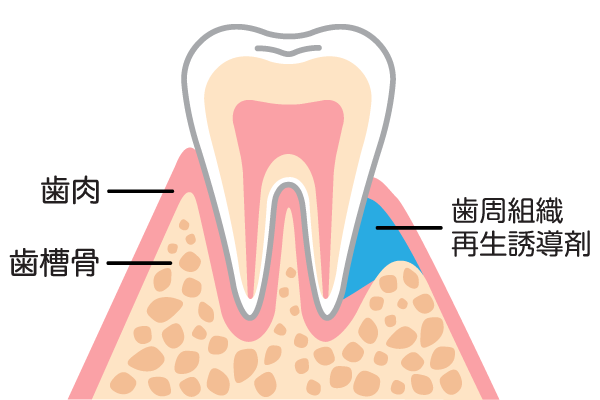 歯周病は、歯を支える骨を破壊してしまうため、最終的には歯が抜け落ちてしまいます。しかし、症例によっては、失われた歯周組織や骨を再生させることが可能です。当院では、エムドゲインやリグロスといった歯周組織の再生を促す材料を用いた再生医療を行っています。これらの材料を、歯ぐきを開いて骨の欠損部分に塗布することで、骨の回復を促します。特にリグロスは、一部の症例において保険診療でも適用することができます。ご自身の歯をできるだけ残すために、治療の選択肢の一つとしてご提案しています。