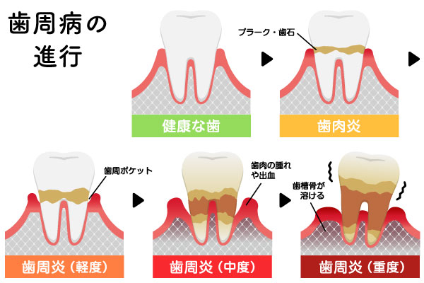 歯周病は、歯を支える骨が溶けていく病気です。初期の自覚症状がほとんどないため、気づかないうちに進行していることが多く、日本人が歯を失う原因の第1位となっています。