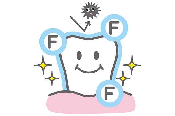 フッ素(フッ化物)は、歯の再石灰化(溶けかかった歯を修復する作用)を促したり、歯質を強くしたりする働きがあります。また、むし歯菌の働きを抑制する効果も期待できます。フッ素は、歯磨き粉や洗口液にも含まれていますが、歯科医院で定期的に高濃度のフッ素を塗布することで、より高いむし歯予防効果を得ることができます。お子さまだけでなく、大人のむし歯予防にも有効な予防処置です。